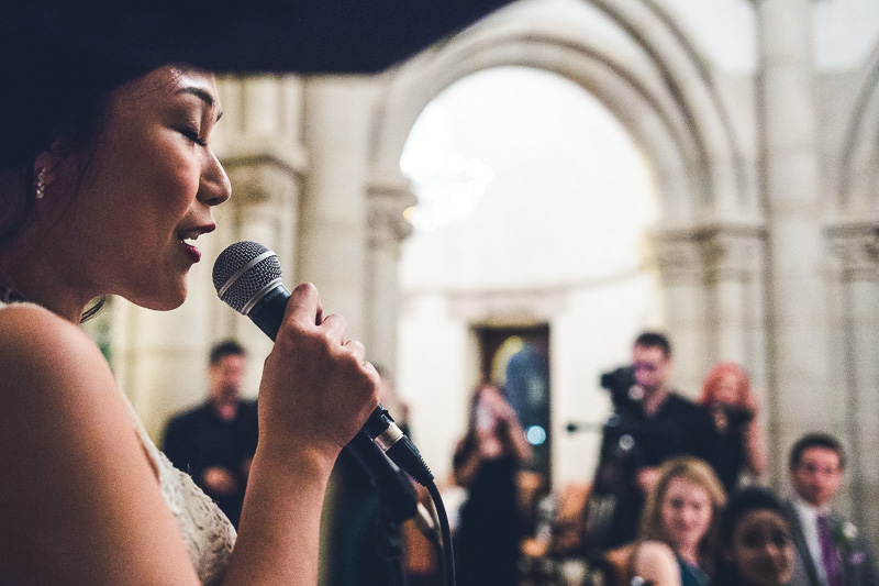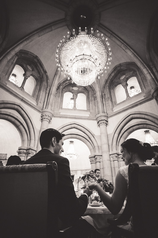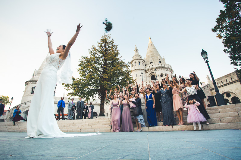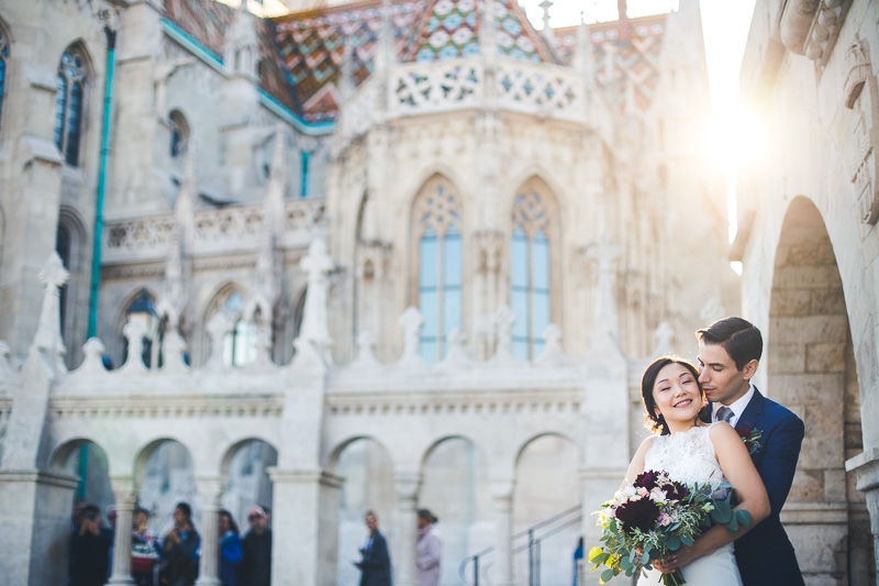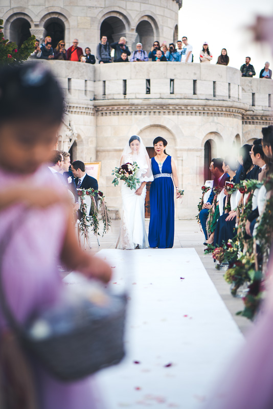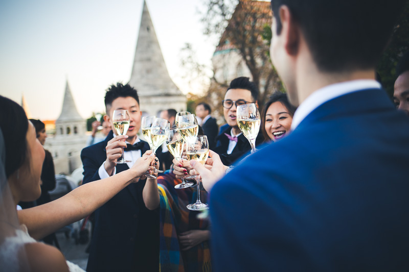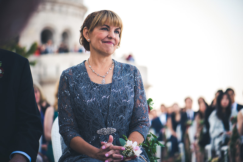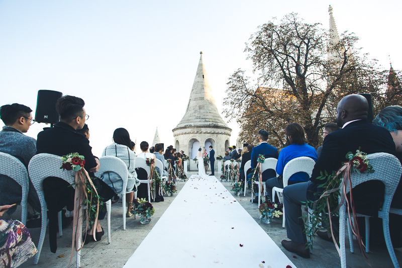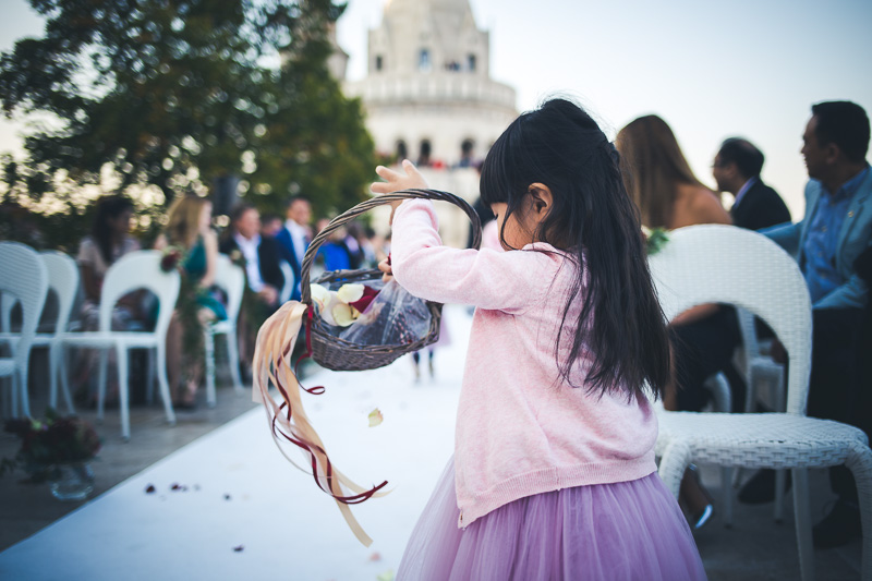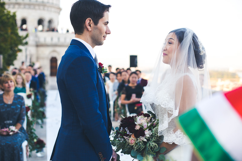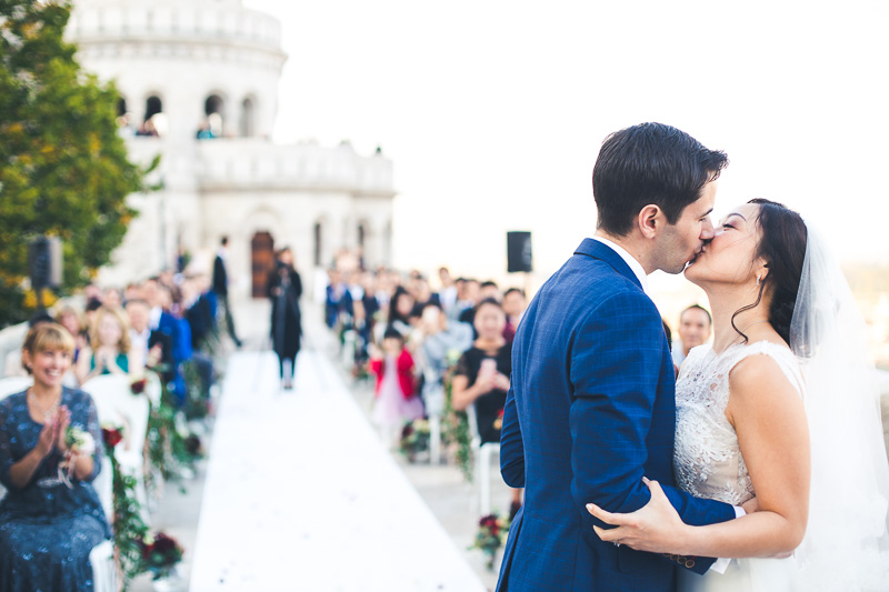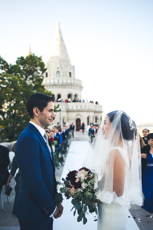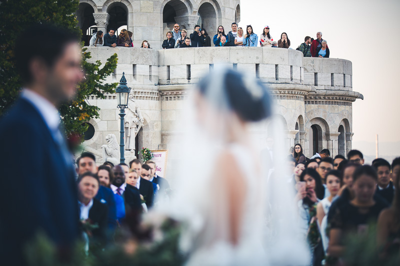 The Bride then changed from red to white. This dress was the wedding dress. In this dress we organized the first look. It was really good to have my second shooter with me. This is one really important moment. We could have it from two different perspective and angles. The ceremony was on the Fishermen's Bastion and followed by a dinner inside. The newly wife sang a beautiful song for her husband in a different but still pretty white dress. That was kinda' awesome.