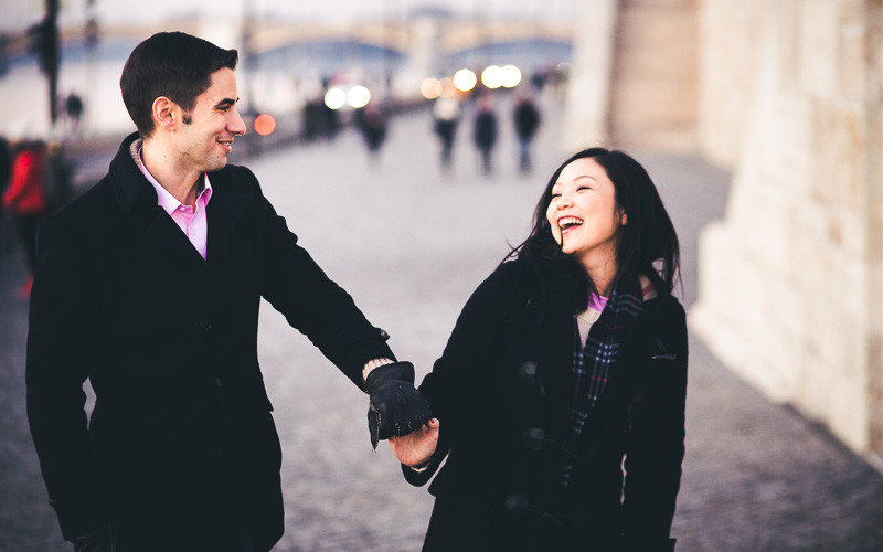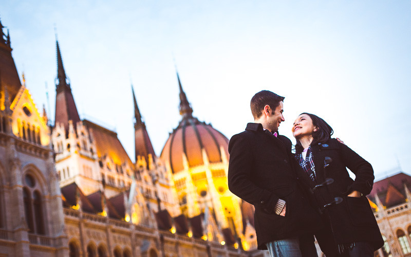 The engagement photo session was, however, in the last days of December. They were in Budapest during the Holidays. I talked them into this since Budapest is amazing with all the decorations and lights. It was freezing cold, but nothing could stop us. They were all happy, smiling and in love.
